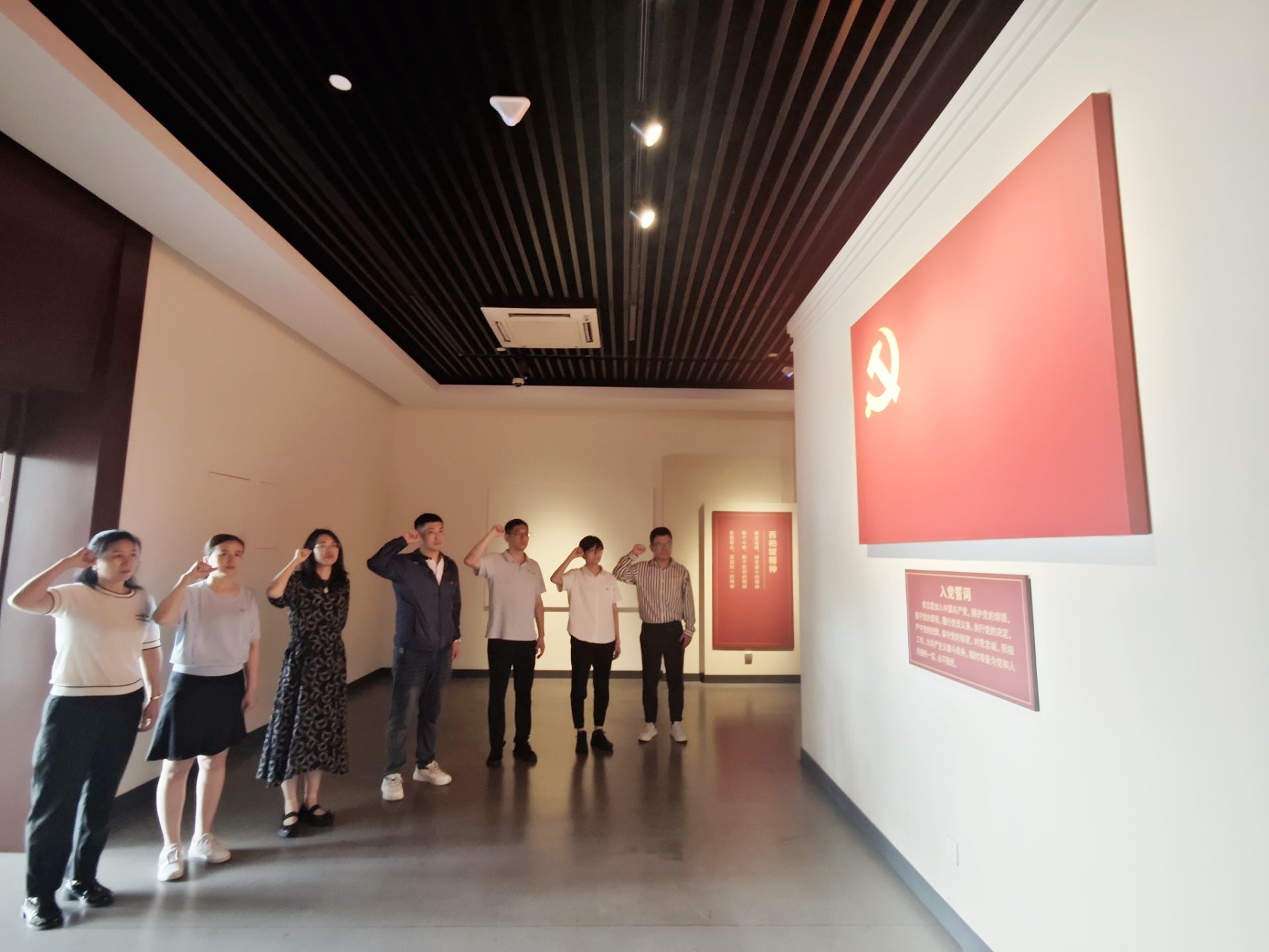 參觀結(jié)束后,進(jìn)行了重溫入黨誓詞活動(dòng),全體黨員面向黨旗莊嚴(yán)宣誓。通過重溫入黨誓詞,黨員再次明確自己的政治身份和使命擔(dān)當(dāng),增強(qiáng)對黨的歸屬感和認(rèn)同感,時(shí)刻提醒自己是一名共產(chǎn)黨員,應(yīng)當(dāng)始終保持共產(chǎn)黨員的先進(jìn)性和純潔性。