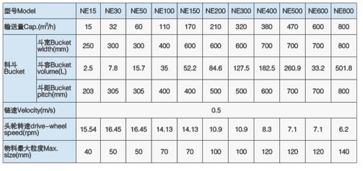 NE型斗式提升機(jī)是一種板鏈?zhǔn)?、重力卸料的提升設(shè)備,非常適合于提升磨琢性較強(qiáng)和粒度較大的物料,物料溫度最高可達(dá)200℃,改型設(shè)備在水泥行業(yè)得到了非常廣泛的應(yīng)用。